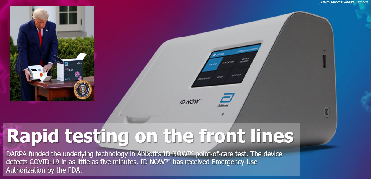 DARPA continues to work closely with the Department of Defense (DoD), multiple U.S. government agencies, as well as its academic and industry partners, to provide technical and scientific solutions to address the COVID-19 pandemic.
