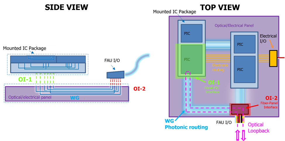 - Month 12: Report describing photonic-electronic panel post fabrication results, and assembly plan for IC attach and FAU I/O.